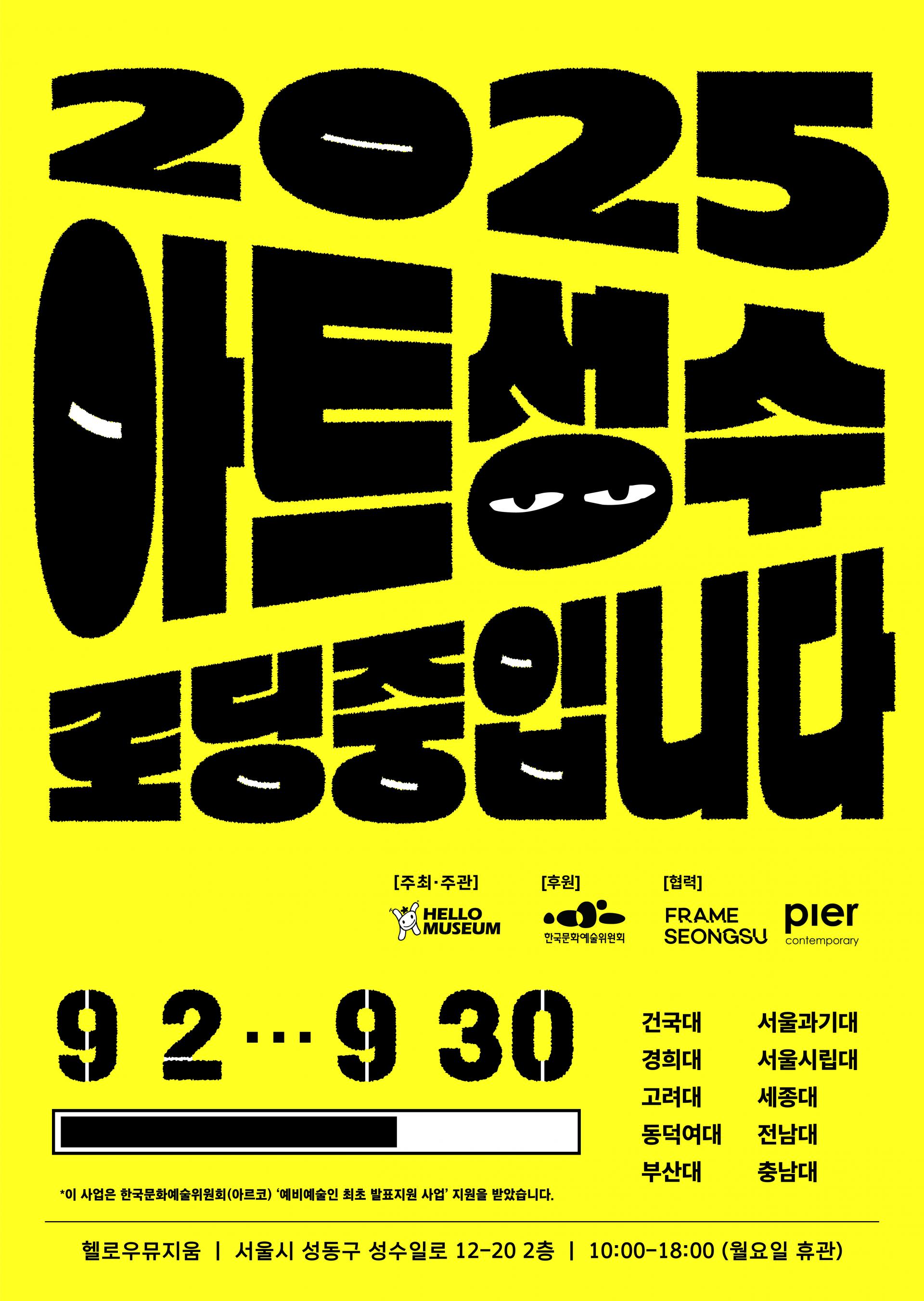 지난 3년간 대학과 연계하여 예비예술인을 발굴해온 이 프로젝트는 올해 《2025 아트성수: 로딩중입니다》를 통해 지역 아트 스페이스와 협업 모델로 확대되었습니다.